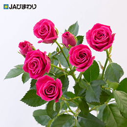 私たちJAひまわりバラ部会は愛知県豊川市で昭和56年よりバラの栽培を行っています。現在の部会員は30名、栽培品種は約150品種。年間で1000万本のバラを全国に出荷しています。